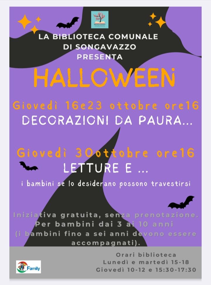 La Biblioteca Comunale di Songavazzo organizza giovedì 30 ottobre le letture di Halloween in Biblioteca.
