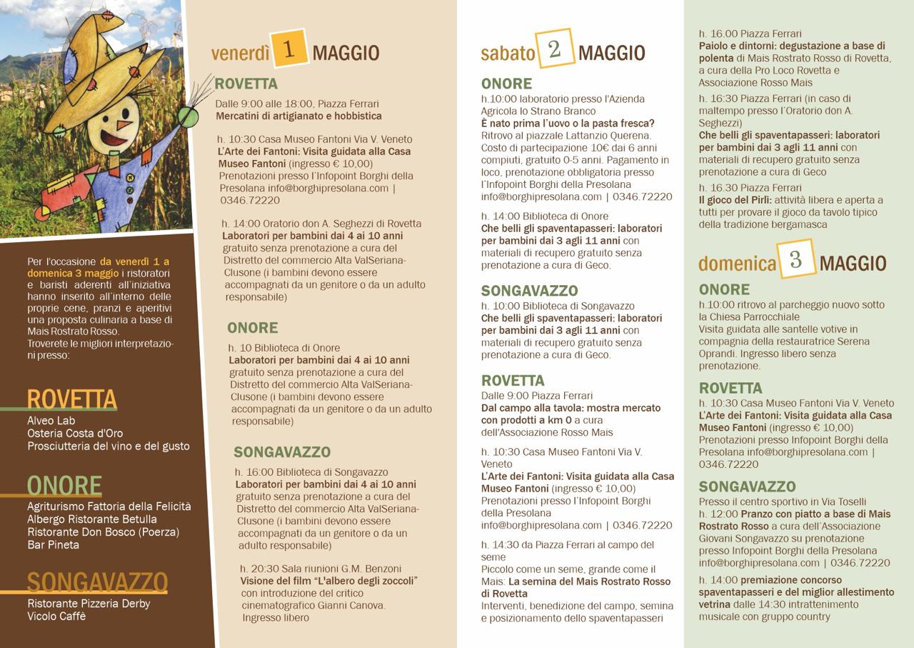 Visto il grande successo del Festival degli Spaventapasseri – edizione 2025, il direttivo dei Borghi della Presolana è lieto di riproporre l’evento nelle giornate dell’1, 2 e 3 maggio 2026.