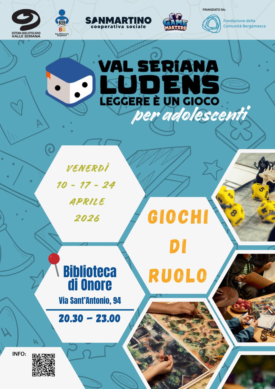 Per tre serate speciali – venerdì 10, 17 e 24 aprile 2026 – la Biblioteca di Onore diventa il punto di ritrovo per chi ama immergersi in storie fantastiche e sfide coinvolgenti. Dalle 20.30 alle 23.00, spazio ai giochi di ruolo: mondi da esplorare, personaggi da interpretare e missioni da vivere insieme, tra immaginazione, strategia e divertimento.